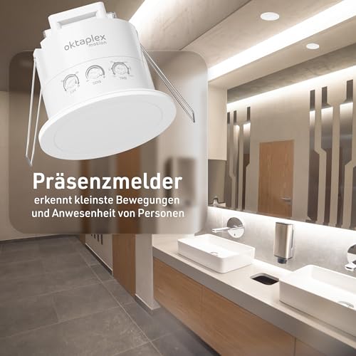 Fragen und Antworten zu Oktaplex Noa Präsenzmelder Decke 360 Grad 24GHz IP65 Radar Bewegungsmelder 6m Anwesenheitssensor Badezimmer geeignet Unterputz flach weiß 230V