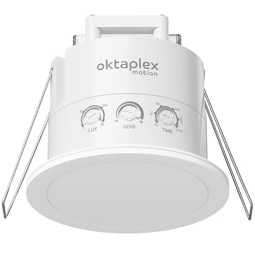 Produktbeschreibung: Oktaplex Noa Präsenzmelder Decke 360 Grad 24GHz IP65 Radar Bewegungsmelder 6m Anwesenheitssensor Badezimmer geeignet Unterputz flach weiß 230V