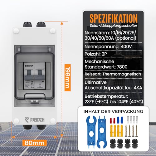 Fragen und Antworten zu PJERJZN Solar PV Trennschalter 10–60A 400VDC/AC – Miniatur-Leistungsschalter mit wasserdichtem Gehäuse für Solaranlagen, Haushalte und Batteriespeicher (40A)