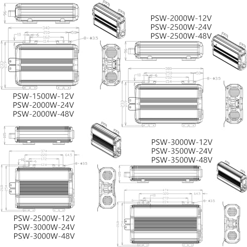 - Der Wechselrichter verfügt über Verpolungsschutz, Unterspannungsschutz, Überspannungsschutz, Überlastschutz, Übertemperaturschutz und Kurzschlussschutz.