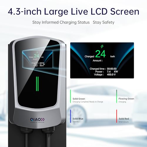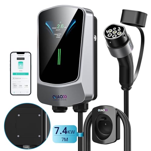 Fazit zu QIAO)) 7.4kW EV Charger Type 2 with 7M Charging Cable Smart APP 4.3′ LCD Screen Display, Max. 32A Electric Car Charger Station, Wallmount Home Wallbox Charger Cable Type 2 Plug wtih EV Cable Holder