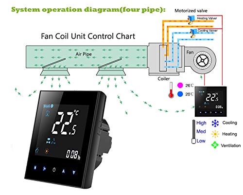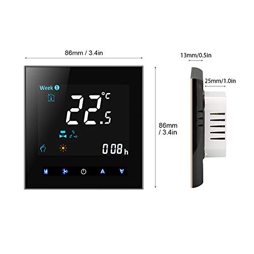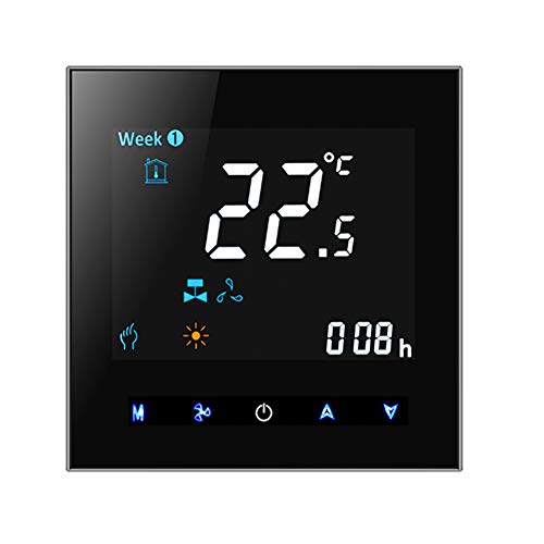 Fragen und Antworten zu Qiumi Smart WiFi Thermostat, Temperaturregler Intelligente Klimaanlage, mit 4-Röhren-LCD-Bildschirm, Funktioniert mit Alexa Googlehome,Schwarz Panel 95~240V AC