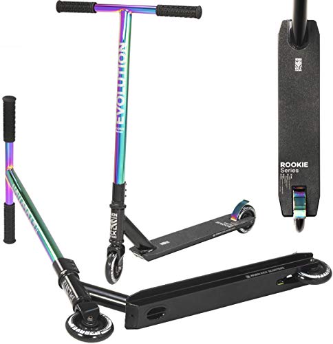 Fragen und Antworten zu RAVEN Scooter Stunt Tricks Roller Kickscooter für Kinder Jugendliche |100mm PU Räder | ABEC-9 Kugellager (Rookie Neo Chrome, 100mm)
