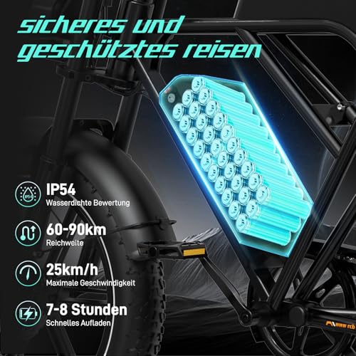 - Ausgestattet mit einer 48V/20,8AH Lithium-Batterie.