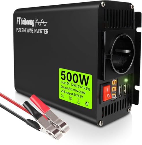 Fragen und Antworten zu Reiner Sinus Wechselrichter 12V DC auf 220V/230V AC LED Display Dual 5V/3.4A USB-Anschlüsse, geeignet für Camping, Wohnmobil, LKW (500W)