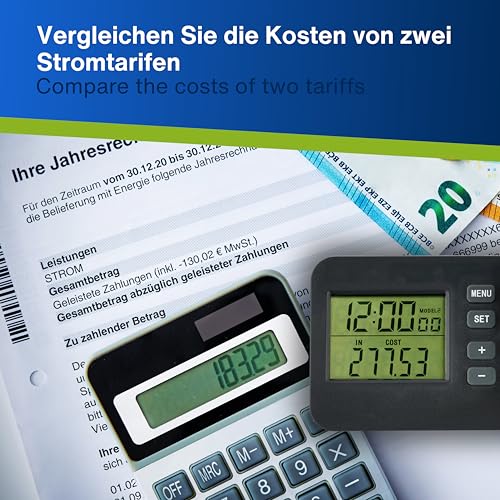 - LCD-Display zur Anzeige von Stromverbrauch und Kosten.