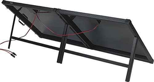 Der stabile Metallrahmen sorgt für Langlebigkeit. Aufgeklappt hat das Solarpanel die Maße 79 x 154 x 3,5 cm, zusammengeklappt ist es mit 79 x 77 x 7 cm kompakt und leicht zu transportieren. Das Gewicht beträgt 17,5 kg.
