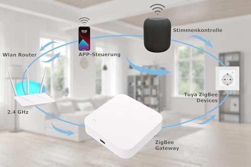 - Das Gateway ist voll kompatibel zu Geräten mit der Smart-Life- und Tuya-App und kann in ein bestehendes Smarthome-System integriert werden.
