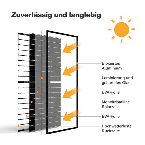 Die SAKETE Solarmodule sind eine ausgezeichnete Wahl für alle, die auf der Suche nach einer effizienten und optisch ansprechenden Lösung zur Stromerzeugung sind. Besonders hervorzuheben ist die hohe Leistung dank der N-Typ Halbzellen-Technologie sowie das elegante Full Black Design, das sich harmonisch in jede Umgebung einfügt. Dank der robusten Bauweise und der langen Garantiezeit profitierst du von einer langfristigen und zuverlässigen Energieversorgung. Achte bei der Installation auf die richtige Ausrichtung, um das volle Potenzial der Module auszuschöpfen.