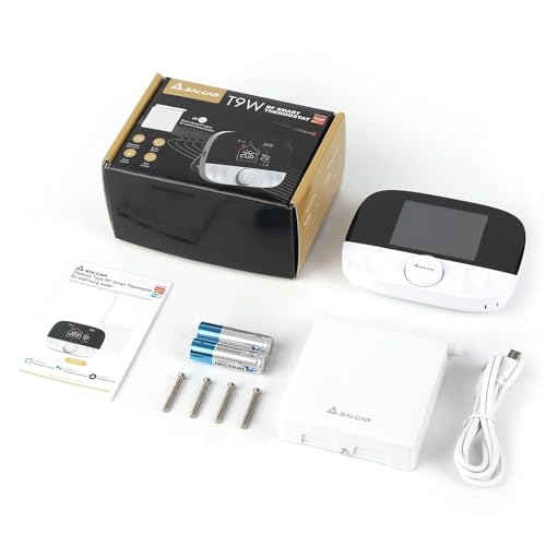 Produktbeschreibung: SALCAR WiFi Smart Thermostat Heizkörper für Gas Boiler Raumthermostat T9W RF Heizkörperthermostat mit Empfänger Tuya Programmierbar Wandthermostat Kompatibel mit Amazon Alexa & Google Home