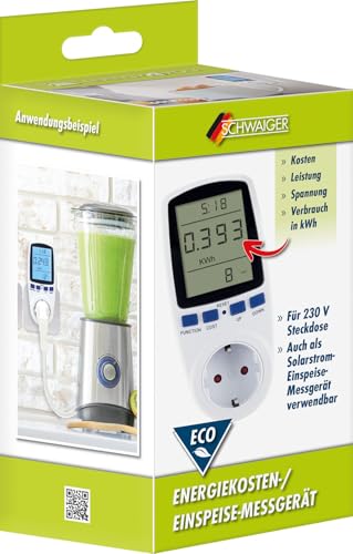 Produktbeschreibung: SCHWAIGER SOEM0100 Energiekostenmessgerät Einspeise-Messgerät Steckdosenmessgerät großes Display Datenspeicherung bei Netzausfall Strommessung