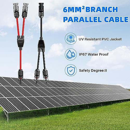 Produktbeschreibung: Sekesoer Solar Y Kabel 6mm², Y Stecker Solar Paar, Solarkabel Y Verteiler, PV Y Stecker Module Balkonkraftwerk (6mm² M/FF and F/MM)