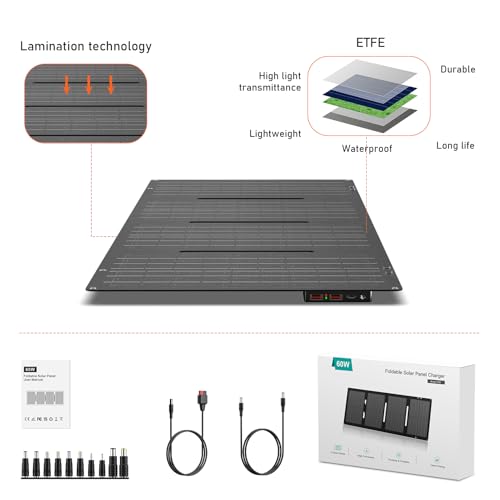 Fragen und Antworten zu SinKeu Faltbares Solarpanel 60 W 18 V, tragbare Solarmodul mit USB-A/Typ-C/DC-Ausgang und Tragetasche, Solarladegerät für Powerstation R300, Solargenerator, Outdoor Camping, Balkon, Garten, Wohnwagen