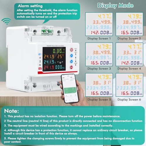 Ein besonderes Merkmal ist das Farb-LCD-Display, das Messergebnisse in einem klaren und leicht lesbaren Format darstellt. Du erhältst Echtzeitdaten zu Leistung, Strom, Spannung, Leckage und vielem mehr. Die bidirektionale Energiemessung ermöglicht es dir, sowohl den Verbrauch als auch die erzeugte Energie, beispielsweise durch eine Solaranlage, präzise zu erfassen. Der Energiezähler verfügt außerdem über integrierte Schutzmechanismen gegen Überspannung, Unterspannung, Überstrom und Leckage, um einen sicheren Betrieb zu gewährleisten. Mit einem Messbereich von 80-300V Spannung und 1-100A Strom ist dieses Gerät für eine breite Palette von Anwendungen geeignet.