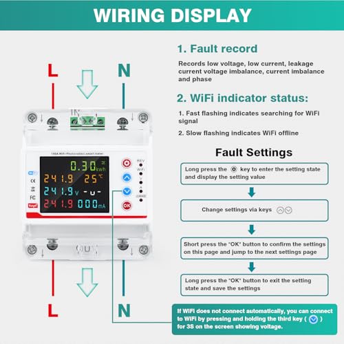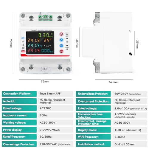 Fragen und Antworten zu Smart WiFi Energiezähler, DIN Schienen Energiezähler, 2P 100A Tuya WiFi Smart bidirektionaler Energie Leistungsmesser Leckage Über Unter Spannungsschutz für Haus, Wohnung