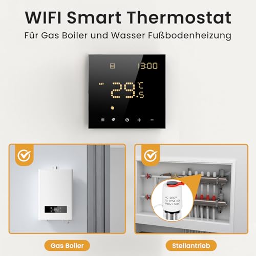Fragen und Antworten zu Smart WiFi Thermostat für Wasser-Fußbodenheizung und Gasboiler, Programmierbar Raumthermostat Unterstützen Alexa, Google Home Sprachsteuerung und Smart Life App Fernbedienung (2,4-GHz-WiFi)