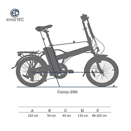 Vor dem Verkauf werden die E-Bikes auf Qualität und Sicherheit geprüft. Der Aluminiumrahmen mit Sicherheits-Faltmechanik erhöht den Fahrkomfort und erleichtert das Verstauen des Klapprades. Das smartEC Camp-20H ist somit dein idealer Begleiter für Radtouren und den täglichen Gebrauch.