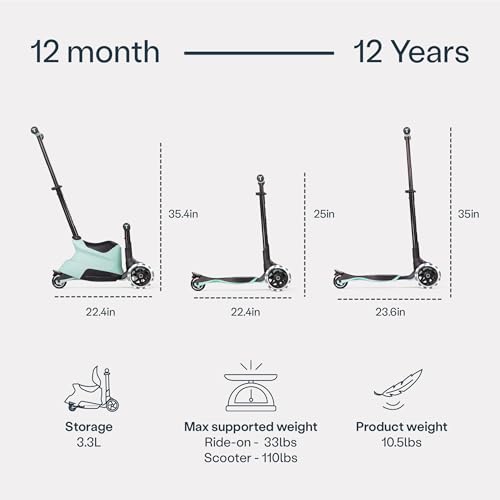 Fragen und Antworten zu smarTrike Xtend Toddler Ride On Scooter Toy, Ages 1-12, Foldable Scooter for Kids with XL LED Wheels, Soft Green