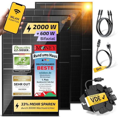 Fragen und Antworten zu Solakon Balkonkraftwerk 2000W komplett Steckdose – Balkonkraftwerk 2000 Watt neuester Wechselrichter 800W – Solaranlage Komplettset mit 4x500W Solarpanel/Solar Panels mit 5m Kabel