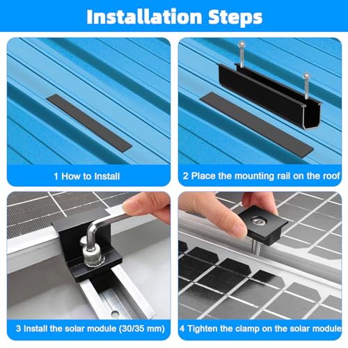 Produktbeschreibung: Solarmodul Halterung für 2X Module, 12CM Aluprofil Schienen+ Verstellbare Klemme für 30-35MM Dicke Module, Solarpanel Halterung Montageset für Flachdach Trapezblech Blechdach