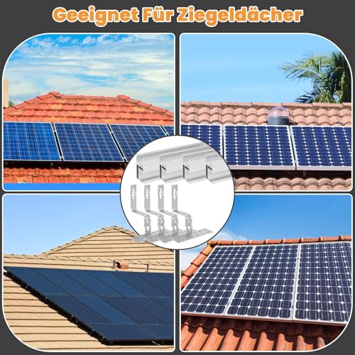 Im Vergleich zu anderen Solarmodulhalterungen für Ziegeldächer zeichnet sich dieses Set durch die Verwendung von Stahl und Aluminium aus, was für eine hohe Stabilität und Witterungsbeständigkeit sorgt. Viele andere Sets verwenden möglicherweise weniger robuste Materialien oder bieten keine verstellbaren Klemmen, was die Installation erschweren kann. Die einfache Montage und die spezielle Anpassung an Ziegeldächer sind weitere Vorteile gegenüber universellen Halterungssystemen.