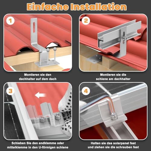 - Geeignet für die Montage von 2 Solarmodulen auf Ziegeldächern.