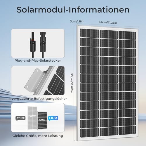 Fragen und Antworten zu Solarpanel 480W, 12V PV Modul, SMBB Technologie, Hohe Effizienz Monocrystalline Solarmodul, Full Black Aluminium Frame Solar Panel, Ideal for Balcony Power Plant, Motorhome, Boat (120W*4)