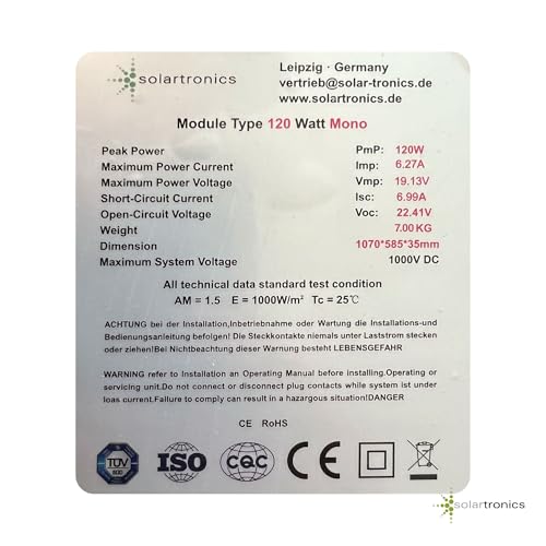 - Nennleistung: 120 Watt (Pmax) +3 % Toleranz