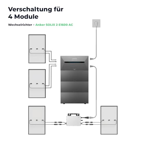 Produktbeschreibung: Solarway® All In One Balkonkraftwerk mit Speicher 1000W komplett Steckdose – 1,6-3,2 kWh Anker Solix 2 AC Speicher – Erweiterungsset für Ihr Balkonkraftwerk (Balkon Halterung, 3,2 kWh)