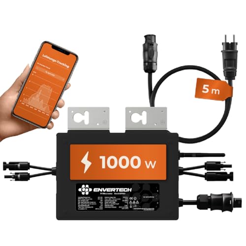 Produktbeschreibung: Solarway All In One Envertech Mikro-Wechselrichter 1000W Set inkl. 5m Kabel – Wechselrichter Balkonkraftwerk 800W-1000W für 2 PV Module – Black CASE – App & WiFi & Bluetooth