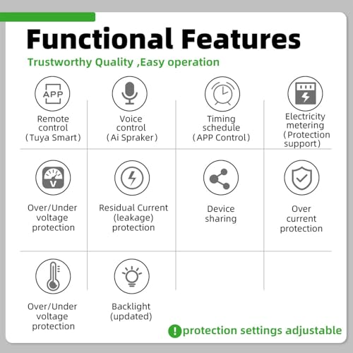 Der Stromzähler verfügt über verschiedene Schutzfunktionen, darunter Überspannungsschutz, Unterspannungsschutz und Überstromschutz, um einen sicheren Betrieb zu gewährleisten. Laut Produktbeschreibung ist das Gehäuse aus feuerfestem Material gefertigt, was die Sicherheit zusätzlich erhöht.