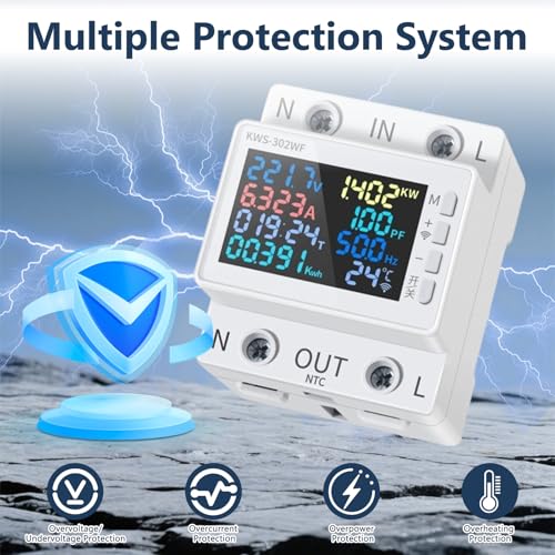 Dank des klaren LCD-Displays hast du alle wichtigen Parameter wie Spannung, Strom, Leistung, Energieverbrauch und Temperatur stets im Blick. Das integrierte Vierfach-Schutzsystem schützt deine Geräte vor Schäden durch Überspannung, Unterspannung, Überstrom, Überhitzung und Überlastung. Die einfache Hutschienen-Montage ermöglicht eine schnelle und unkomplizierte Installation, ohne dass du Schrauben benötigst (Hutschiene ist nicht im Lieferumfang enthalten).