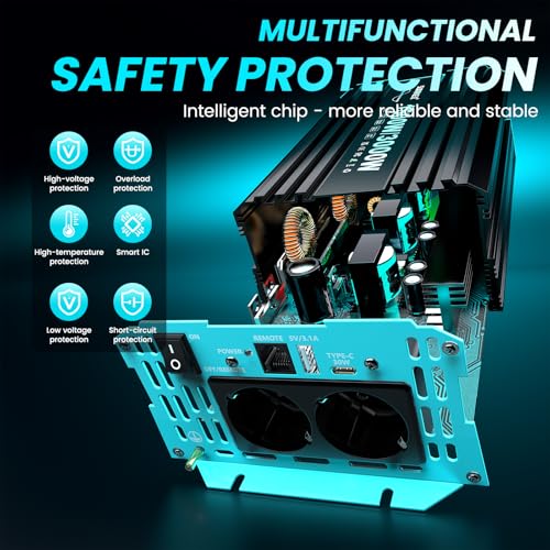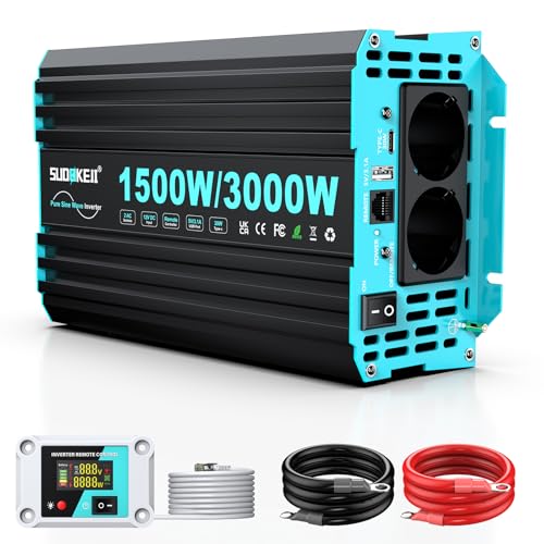 Fragen und Antworten zu SUDOKEJI 1500W/3000W Wechselrichter Reiner Sinus Spannungswandler 12v auf 230v Power Inverter mit LCD-Fernbedienung,Type-C und USB Anschlüsse,2 EU AC Steckdosen für Solar,Fahrzeuge,Wohnmobil