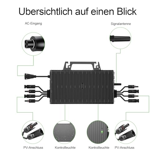Der SUKFLOW Mikro Wechselrichter 2250W ist dein zuverlässiger Partner für die Umwandlung von Solarstrom in nutzbaren Wechselstrom. Mit seiner hohen Kompatibilität, robusten Bauweise und intelligenten Funktionen ermöglicht er dir eine effiziente und unkomplizierte Nutzung von Solarenergie. Dank der einfachen Installation und der Möglichkeit zur Fernüberwachung per App hast du die volle Kontrolle über deine Energieerzeugung.
