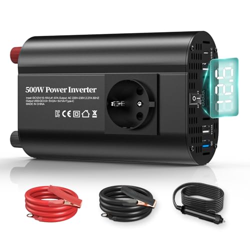 Der TAGEEBLU 500W Wechselrichter ist ein Spannungswandler, der 12V Gleichstrom in 230V Wechselstrom umwandelt. Er eignet sich ideal für den Einsatz im Auto, Wohnmobil oder Boot, um elektronische Geräte wie Handys, Laptops und andere Geräte unterwegs aufzuladen. Laut Produktbeschreibung bietet der Wechselrichter eine kontinuierliche Leistung von 500 Watt und eine Spitzenleistung von 1000 Watt.