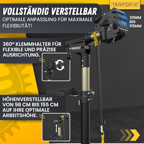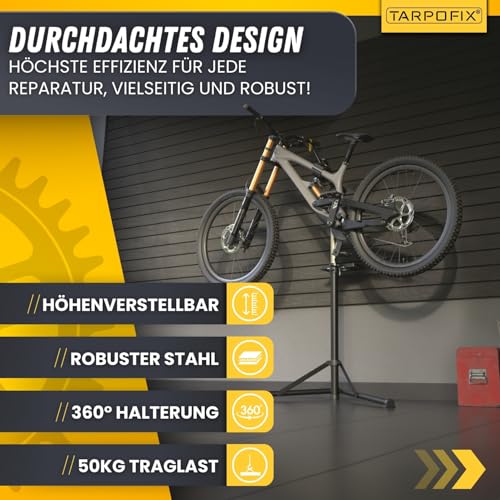 Produktbeschreibung: Tarpofix® Fahrrad Montageständer bis 50kg | Profi Fahrrad Reparaturständer | Montageständer für Fahrräder & E-Bike | Schwerlast Fahrradhalter Ebike | Fahrradständer Reparatur | Fahrradmontageständer