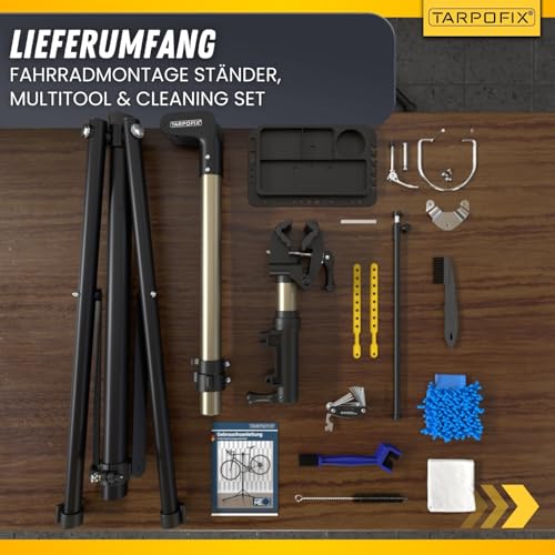 Fragen und Antworten zu Tarpofix® Fahrrad Montageständer bis 50kg | Profi Fahrrad Reparaturständer | Montageständer für Fahrräder & E-Bike | Schwerlast Fahrradhalter Ebike | Fahrradständer Reparatur | Fahrradmontageständer