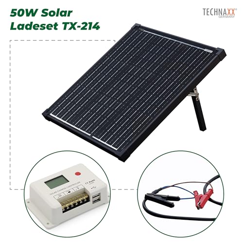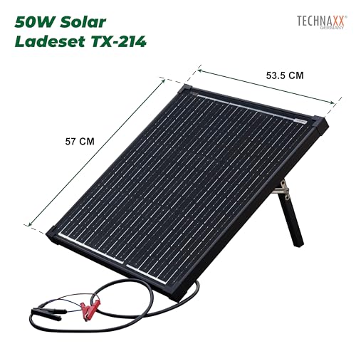 Produktbeschreibung: Technaxx 50W Solar Ladeset TX-214 – Monokristallines tragbares Solarpanel mit Laderegler inkl. LCD-Anzeige – Ideal für Garten, Camping, etc. lädt z.B. eine Auto- oder eine Wohnmobil-Batterie