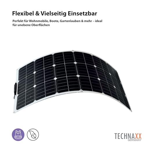 Fragen und Antworten zu Technaxx flexibles Solar-Panel 100W – Das 100 Watt Solarpanel ist ideal für Camping, Wohnwagen, Boote, Gartenlauben, sowie Balkone etc. – Monokristalline Solarmodule TX-208
