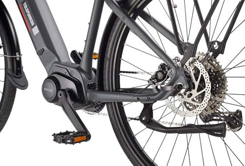 Das TELEFUNKEN E-Bike ist ein vielseitiges SUV City Pedelec, das dich sowohl im Alltag als auch auf ausgedehnten Touren unterstützt. Der leichte Aluminum-Rahmen und die 29 Zoll Reifen sorgen für ein angenehmes Fahrgefühl. Dank der 10-Gang-Kettenschaltung passt du die Übersetzung optimal an die jeweilige Strecke an. Der integrierte Mittelmotor mit 250 Watt in Kombination mit dem hochwertigen Li-Ion-Akku ermöglicht eine Tretunterstützung bis zu 25 km/h und eine Reichweite von bis zu 120 km.