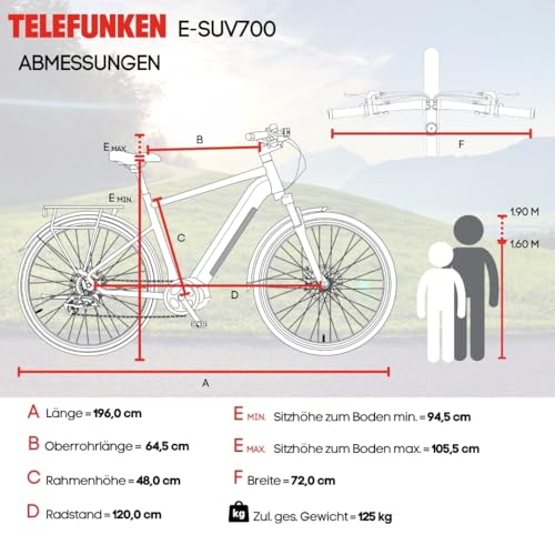 Fragen und Antworten zu TELEFUNKEN E-Bike 29 Zoll Elektrofahrrad für Herren und Damen | SUV City Pedelec mit Mittelmotor und 720 Wh Li-Ion Akku | 10-Gang-Kettenschaltung | hydraulische Scheibenbremsen | LED-Beleuchtung