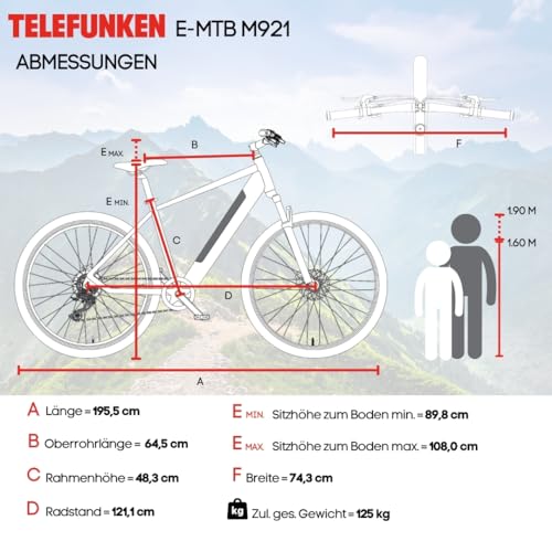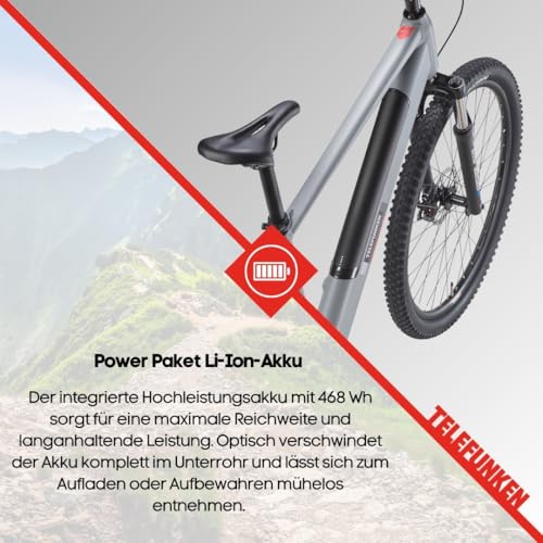 Fragen und Antworten zu TELEFUNKEN E-Bike Mountainbike 29 Zoll für Herren und Damen | Elektrofahrrad mit 250W Hinterradmotor & 468 Wh Akku | 7-Gang Kettenschaltung | Scheibenbremsen | MTB Hardtail Pedelec