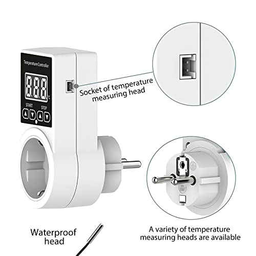 Produktbeschreibung: Temperaturregler Temperaturschalter – Temperaturregler 230v mit Fühler, Wasserdicht Thermostat Heizung Smart, Thermostat Steckdose für Gewächshaus Terrarium Aquarium Treibhaussaatkeimung Heizung