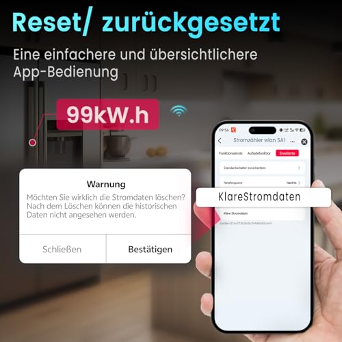 Die Einbindung ins WLAN ermöglicht dir die Echtzeit-Energieverbrauchsmessung über die Smart Life/TUYA App. Hier kannst du den täglichen, monatlichen und jährlichen Stromverbrauch übersichtlich verfolgen. Du erkennst sofort, welche Geräte deinen Stromverbrauch in die Höhe treiben. Außerdem kannst du deine Verbrauchshistorie zurücksetzen und die Daten zur Analyse in eine Excel-Tabelle exportieren. Besonders praktisch ist die Alarmfunktion: Du erhältst eine Push-Nachricht, wenn Spannung, Strom oder Leistung bestimmte Grenzwerte überschreiten. Für Vermieter und Mieter ist zudem die Prepaid-Abrechnungsfunktion interessant, um den Stromverbrauch transparent nachvollziehen zu können. Bei der Nutzung in Solaranlagen ist zu beachten, dass die Installation auf der AC-Seite nach dem Wechselrichter erfolgen sollte.
