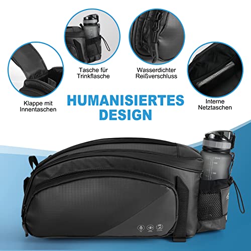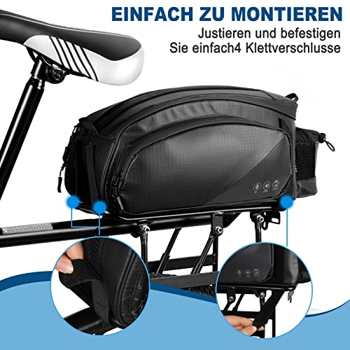 Produktbeschreibung: toptrek Fahrradtaschen für Gepäckträger, 12L Gepäckträgertasche, Wasserdicht & Reflektierend Fahrradtasche Gepäckträger Hinten, Multifunktionale 3-In-1 Gepäckträgertaschen mit Regenschutz