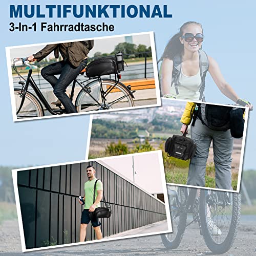 - Multifunktionale 3-in-1-Fahrradtasche (Gepäckträgertasche, Handtasche, Umhängetasche).