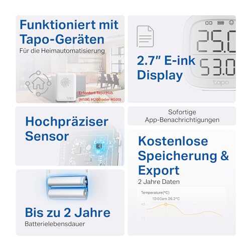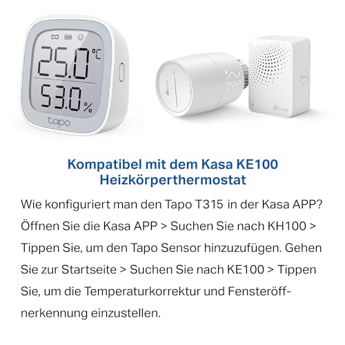 Fragen und Antworten zu TP-Link Tapo T315 Smart Home Temperatur und Luftfeuchtigkeitsmesser,digitales Thermo-Hygrometer Innen, Raumthermometer mit 2.7“ E-Ink Display, Hochpräzisionssensor, Hub erforderlich