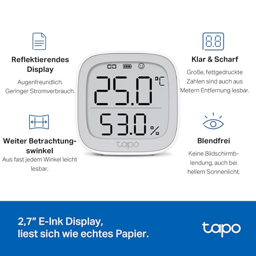 Produktbeschreibung: TP-Link Tapo T315 Smart Home Temperatur und Luftfeuchtigkeitsmesser,digitales Thermo-Hygrometer Innen, Raumthermometer mit 2.7“ E-Ink Display, Hochpräzisionssensor, Hub erforderlich
