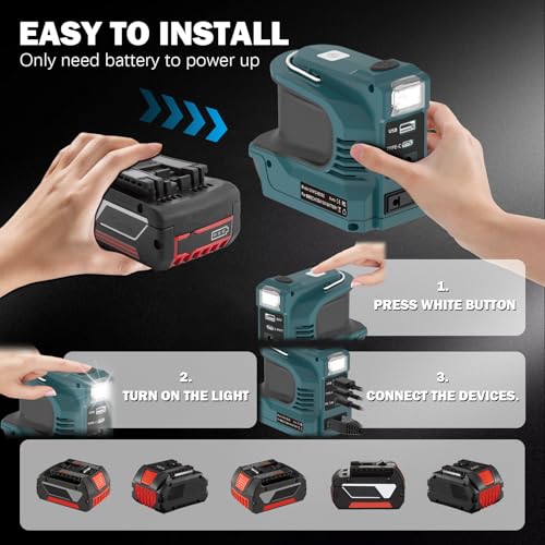 Fragen und Antworten zu TPDL 220W Akku-Wechselrichter Konverter für Bosch Professional 18V GBA Akku, DC 18V auf 220V~230V AC Steckdosen Spannungswandler mit USB & Type-C, LED Lampe Sinus Sine Wave für Bosch ProCORE Bat Akku