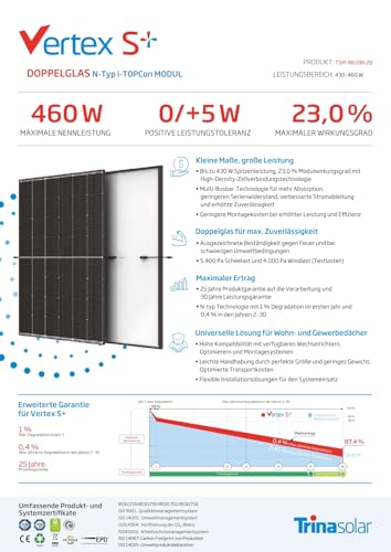 Fragen und Antworten zu Trina Solar Solarmodul Vertex S+ 460 W Black Frame – N‑Typ i‑TOPCon Solarmodul, Glas‑Glas